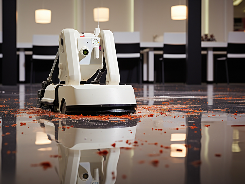 This robot offers an efficient solution for cleaning operations in hotels, establishments, and more. It autonomously moves within the predefined area after being programmed with cleaning time and designated surface paths.